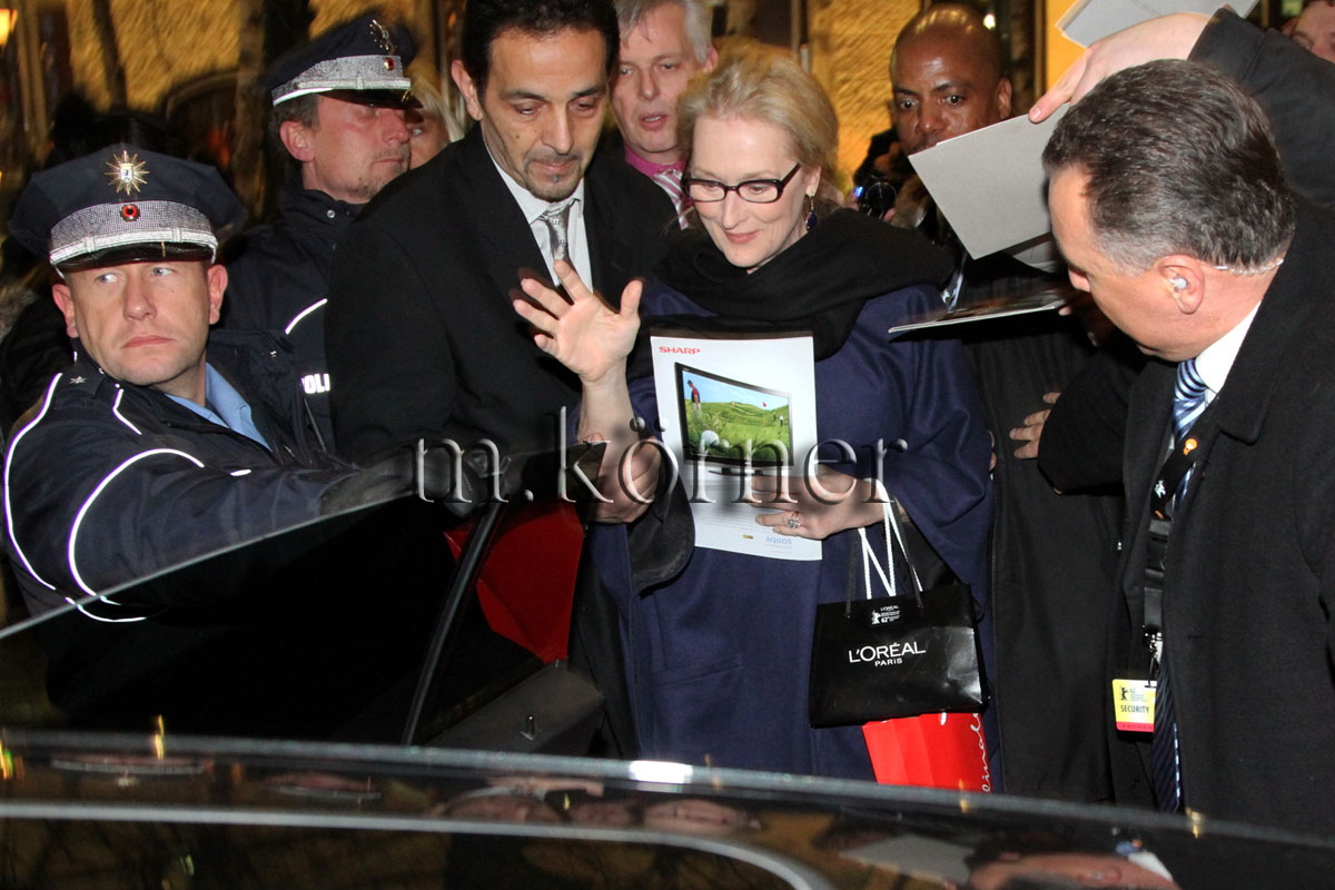 Vorheriges BildNächstes Bild meryl streep 13.02.2012 / berlin / deutschland / meryl streep verlaesst das luther&wegner eskortiert und beschützt von der polizei